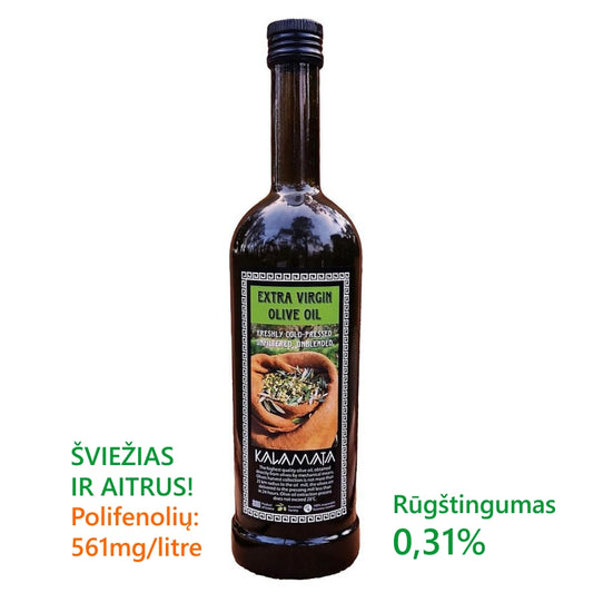 Ankstyvo derliaus, aitrus, ypač tyras, KALAMATA alyvuogių aliejus, 2024.10/11mėn. derlius